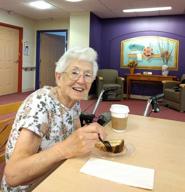 When she became blind she didn't sit and hope someone would be kind enough to bring tea. Instead she learned how to get around this building, going up and down the elevator using a walker with a sign that said Low Vision. She ordered food from the cafe and taught the folks who worked there how she liked her food and coffee prepared.